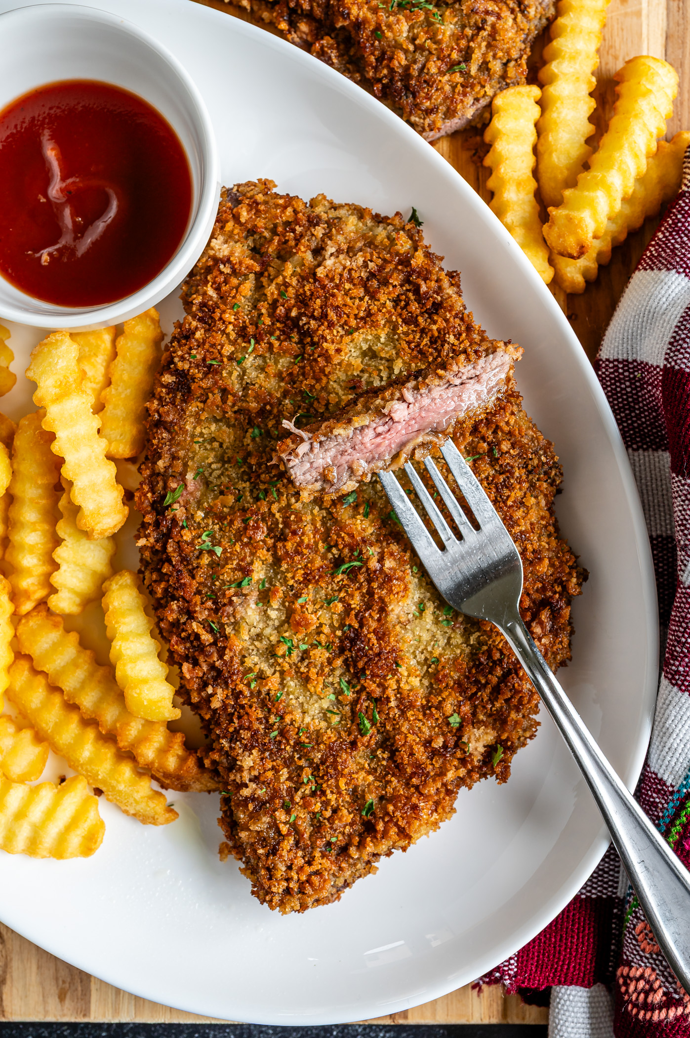 - Flour: all purpose flour makes the breading stick to the steak better.