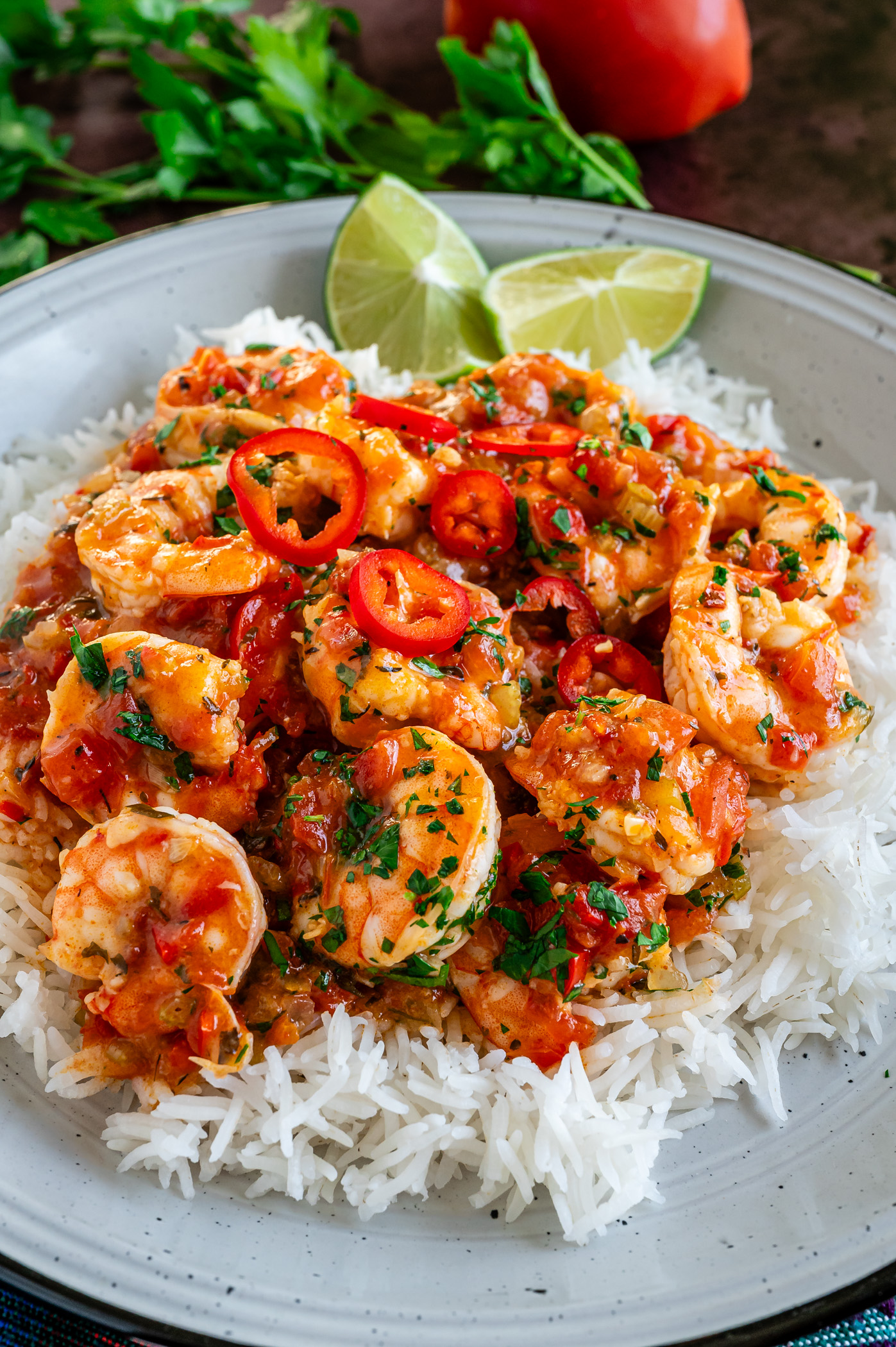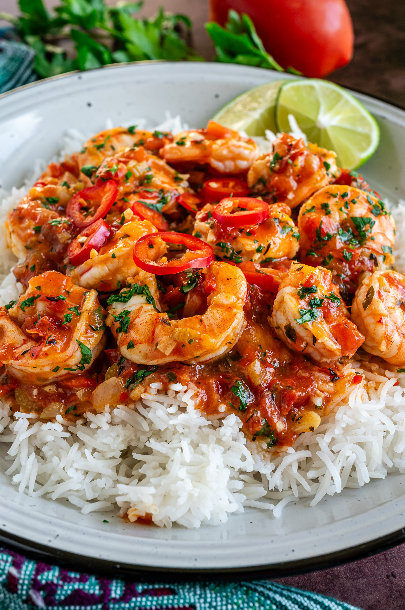 Creole Shrimp (Camarones Criollos) are cooked in a tangy and slightly spicy tomato, onion, garlic, celery, and bell pepper "sofrito". With just a handful of easy-to-find sautéed veggies, you'll be able to create a mouthwatering and hearty dish in less than 30 minutes. Fresh and simple, Camarones Criollos just hit the spot!